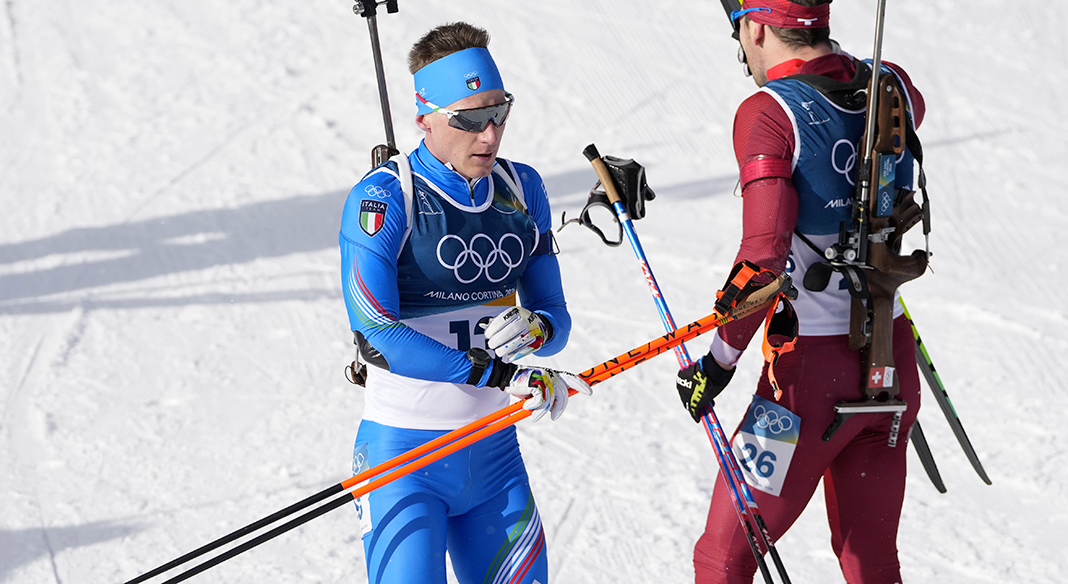 Tommaso Giacomel vive ancora una giornata sfortunata: l’azzurro è eccellente nella prima parte di gara, tanto da uscire davanti a tutti dal secondo poligono, senza alcun errore a terra, ma nel terzo giro accusa un dolore al fianco che gli toglie il respiro, costingendolo al ritiro.
