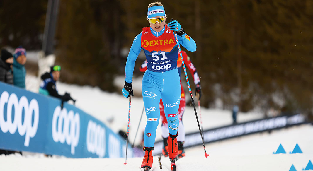 La finnica Johanna Matintalo ha vinto in volata la mass start in classico di 20 chilometri che ha aperto la giornataa conclusiva della tappa di Coppa del Mondo di Goms, in Svizzera. La finnica con il tempo di 55’53″9 ha preceduto di soli nove decimi di secondo la statunitense Jessie Diggins, leader della classifica generale, con la norvegese Astrid Slind terza a 1″7. Martina Di Centa è la migliore delle azzurre con il 29esimo posto a 2’46″8, seguita in classifica da Caterina Ganz, trentesima a 3’05″8 mentre Anna Comarella chiude al 37esimo posto a 4’15; Nadine Laurent non ha completato la gara.