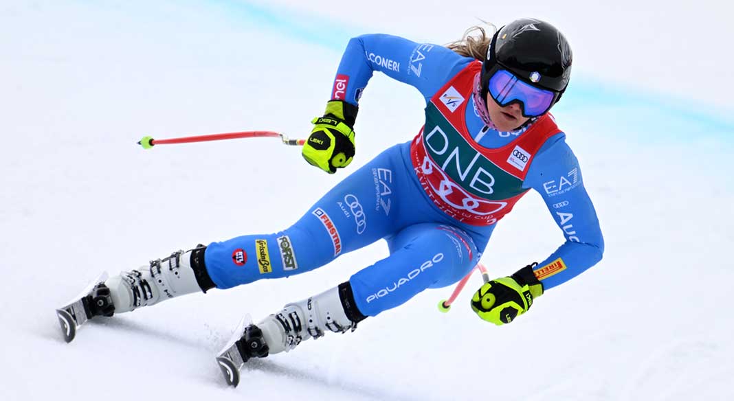 La prima delle azzurre è Nicol Delago che termina al quinto posto con mezzo secondo di svantaggio rispetto alla leader, ed è seguita da Sofia Goggia, ottava a 75 centesimi. Quindi Nadia Delago a 92, davanti a Laura Pirovano a 1″03. Elena Curtoni chiude con 2″03 di ritardo. Si è nascosta Emma Aicher che ha terminato la prova in piedi, finendo in fondo alla classifica.
