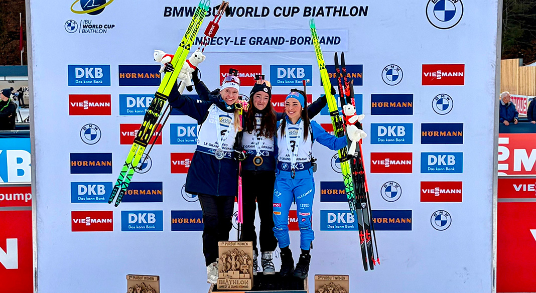 Dorothea Wierer si conferma sul podio di Le Grand Bornard ed è terza anche nell’inseguimento, sesta piazza per Lisa Vittozzi: dopo essere salita sul gradino più basso del podio nella sprint di giovedì, la trentacinquenne azzurra trova la via per ribadire la posizione al termine di una gara che l’ha vista costantemente in quota.